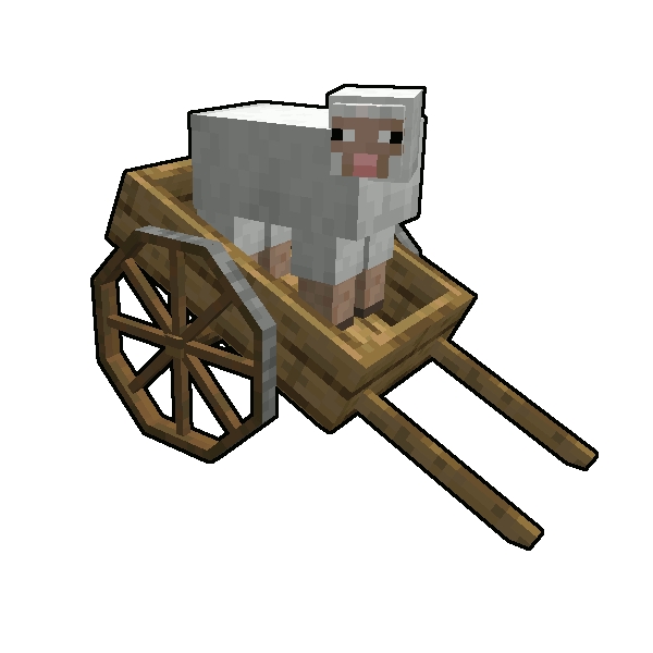 Существует 2 вида повозок подобного типа: для перевозки вещей и мобов. При этом, первая имеет вместимость двойного сундука и одно сидячее место, когда как вторая - целых два.